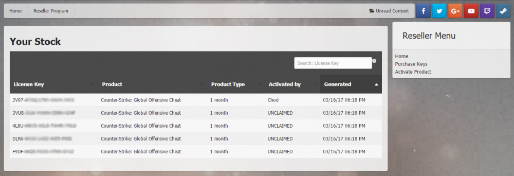 13. Chod's Cheats Approved Reseller Program By becoming an approved reseller you will be able to sell license keys to users who are otherwise unable to pay (for example some Russian and Brazillian communities are unable to pay us directly). Once purchased you can do anything you want with the keys: sell them, give them away, trade them etc. Once a license key is yours we place no restrictions on what you can and cannot do with it. How much discount will I get? It depends on how many license keys you buy, with a bigger order comes bigger discounts. The information above is based on you selling the keys for the same price we sell them for (i.e. one month is £9.99). You can sell them for more, if you wish, to make even bigger profits. What else will I get? Along with your discount you will get: Free thread design by our professional graphic designer for use on your sale pages Access to a private reseller forum where you can talk with other resellers and staff Added to a special Reseller forum group that is only available to resellers and has a unique badge What kind of support will my users get? We will give your users the same support we give our own - 24/7 support via support tickets and the forum. How will I get paid? You will buy license keys directly from us in bulk. That is the only transaction you will have to make with us. From here your users can pay you directly, using whichever method of payment you prefer. Is there a reseller panel? Yes. Once you have been added to the reseller member group you will have access to the reseller panel, where you can manage your stock, and purchase license keys, and more. How do I apply? To apply to become a reseller please make a thread in this forum. Some information we would like to see is: Which community you represent Why you want to be a reseller If you have ever resold cheats before